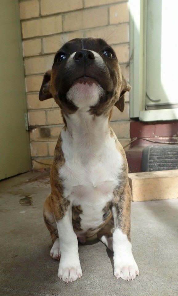 Peppa is a stunning tiger brindle Amstaff with little white socks, a white chest and a black mask. She is super cuddly and will happily fall asleep on your lap within 0.8 seconds. Peppa is adventurous and loves to play. Peppa has been vaccinated, wormed, and will be microchipped in the next week. Peppa is a strong healthy girl and loves her food. She loves to play with her brothers and cause a riot but then will happily take a nap cuddled up with both of them.