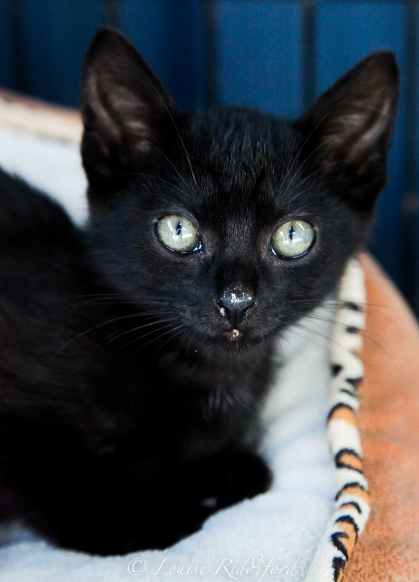This brady bunch of kittens cannot get much cuter! Marcia is just one of the females who has a face so sweet you just want to squeeze her. Her beautiful black coat has hints of chocolate through it, which will make for one dazzling looking feline when she is older. Marcia is happy, always ready to greet you when you walk in and very playful with her brothers and sisters. She will make a great kitten for any family looking to adopt.