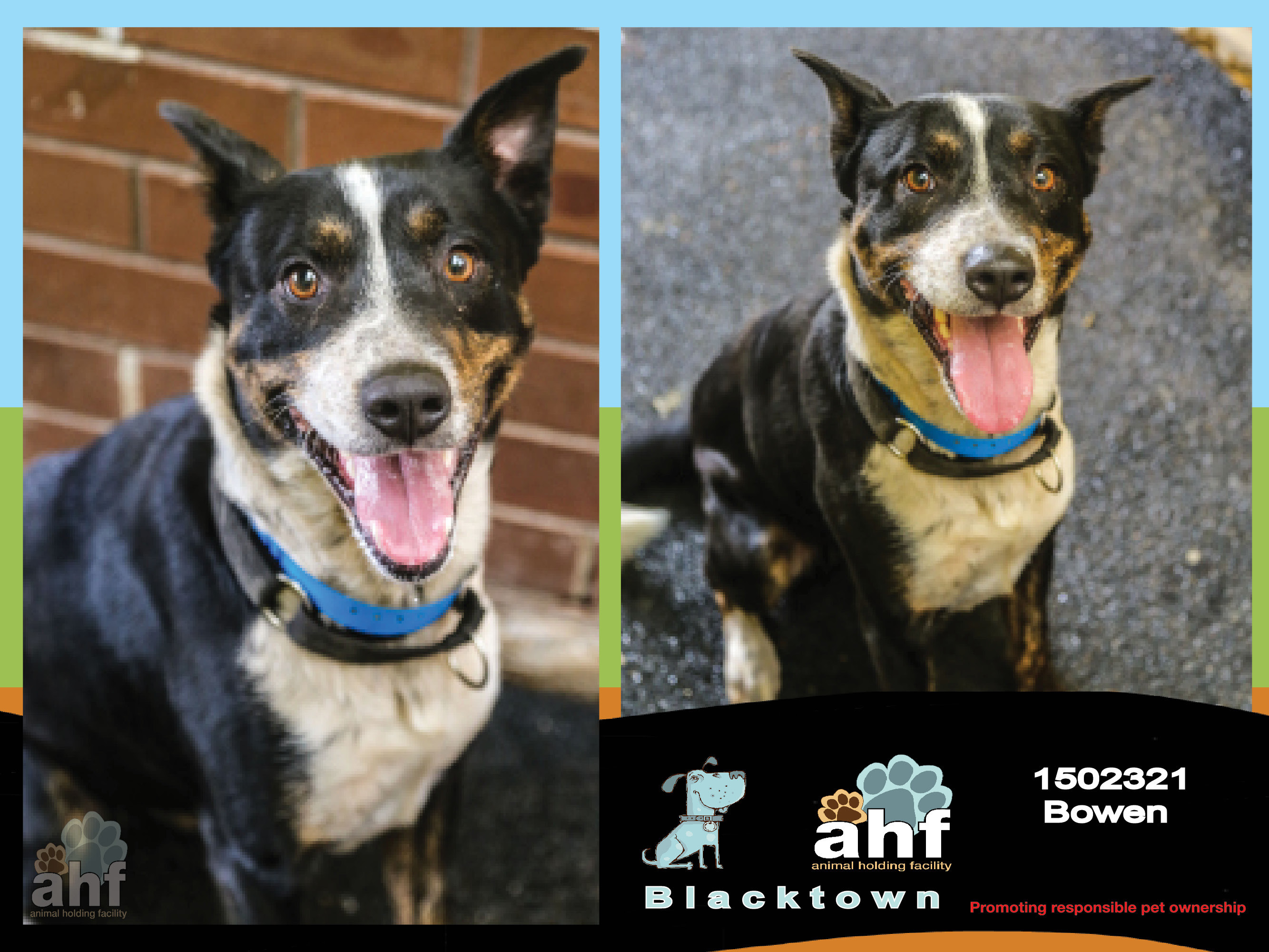 If you already have a dog and wish to adopt Bowen we urge you to visit the facility with your dog for a 'Meet and Greet' to ensure that they are compatible.