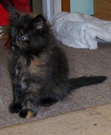 Myrtle is a little devil along with her sister mabel. They scoot about the place dusting the place with their thick furry coat and tickling the christmas decorations hanging on the tree. They are adorable and are looking for a family to call their own