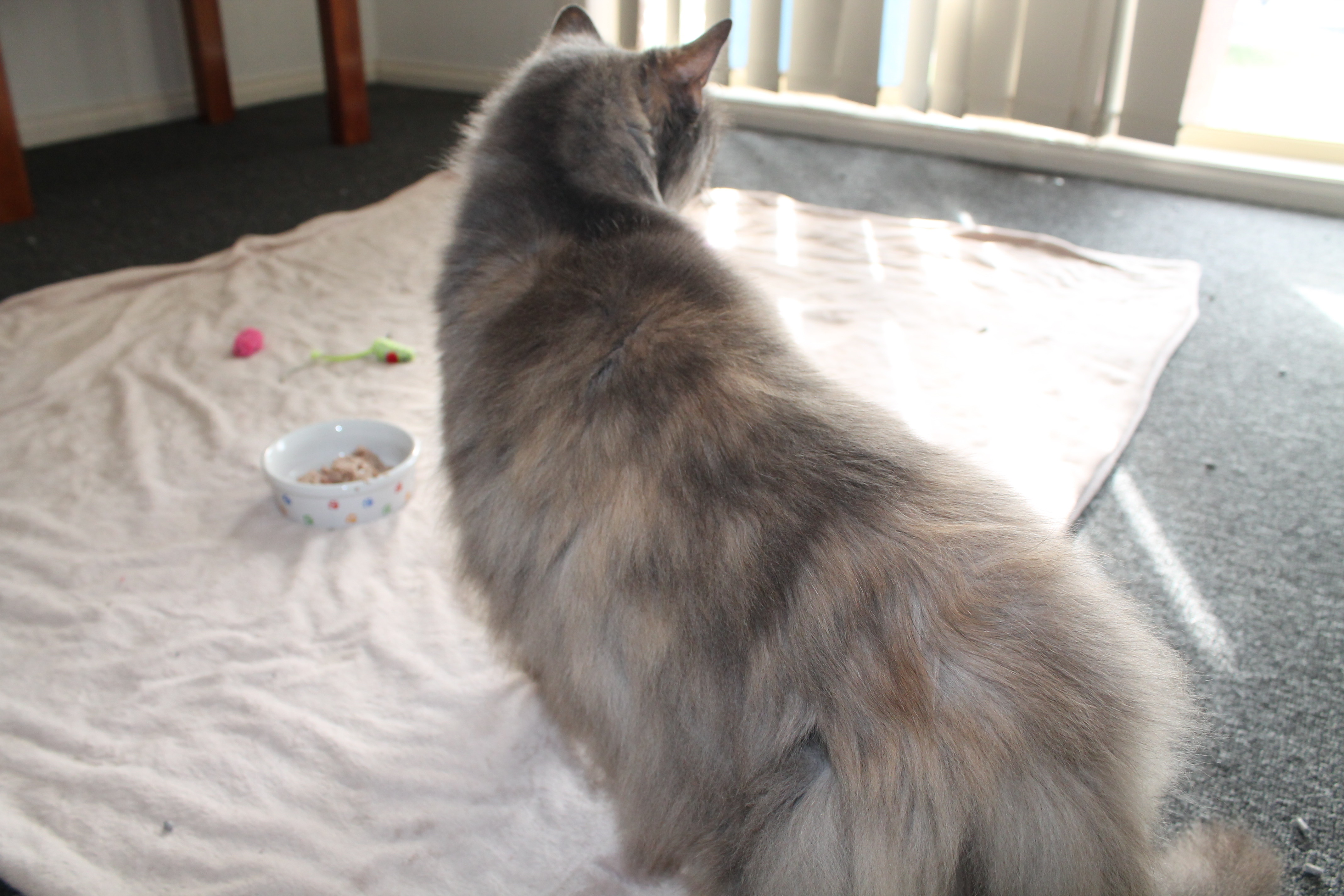 Lilas has a long coat that will require regular brushing to maintain it. Luckily she LOVES a brush! Her markings are also absolutely beautiful. She is a blue tortoiseshell - defined as a majority blue with flecks of ginger.