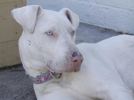 This amazing young girl has just come into rescue and we have been asked to help find her a new home. Ellie is a 2 year old desexed, vaccinated, wormed and microchipped female great dane x whos looking for a loving home. Ellie is deaf. . Due to restricted access to other dogs she is still learning to play nicely. She is currently being fostered with a group of dogs and is improving daily. She is familiar with jan fennells dog listening methods is very smart and trains well to hand signals and kind gentle methods. Shes toilet trained, and crate trained and is used to living a indoor/outdoor lifestyle. Being a white dog management of her exposure to the sun would be needed. Ellie needs an experienced dog owner, she has a very low key temperament and a soft personality she could live in a multiple dog house hold. She has been exposed to cats with no issues