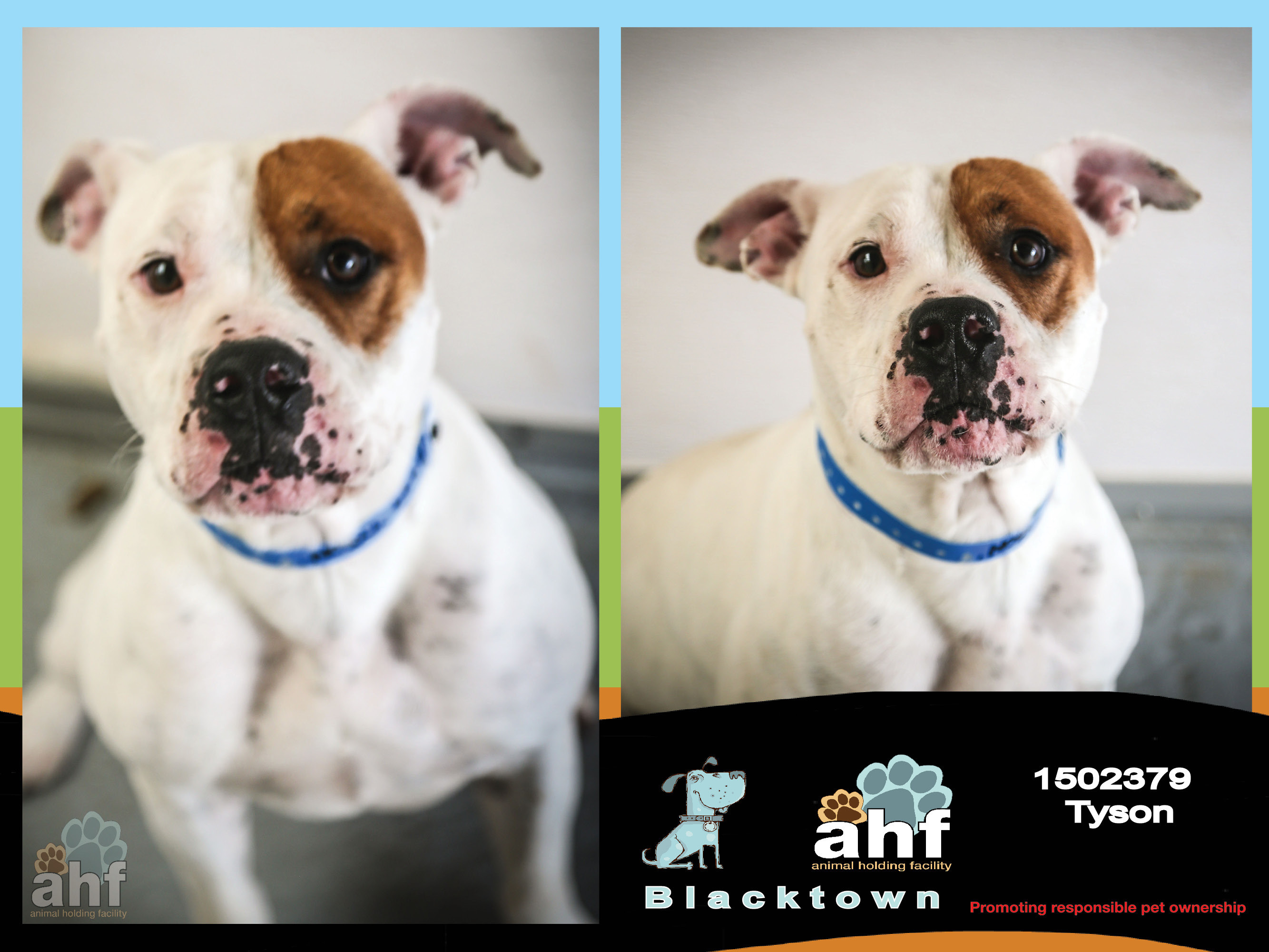 If you already have a dog and wish to adopt Tyson we urge you to visit the facility with your dog for a 'Meet and Greet' to ensure that they are compatible.