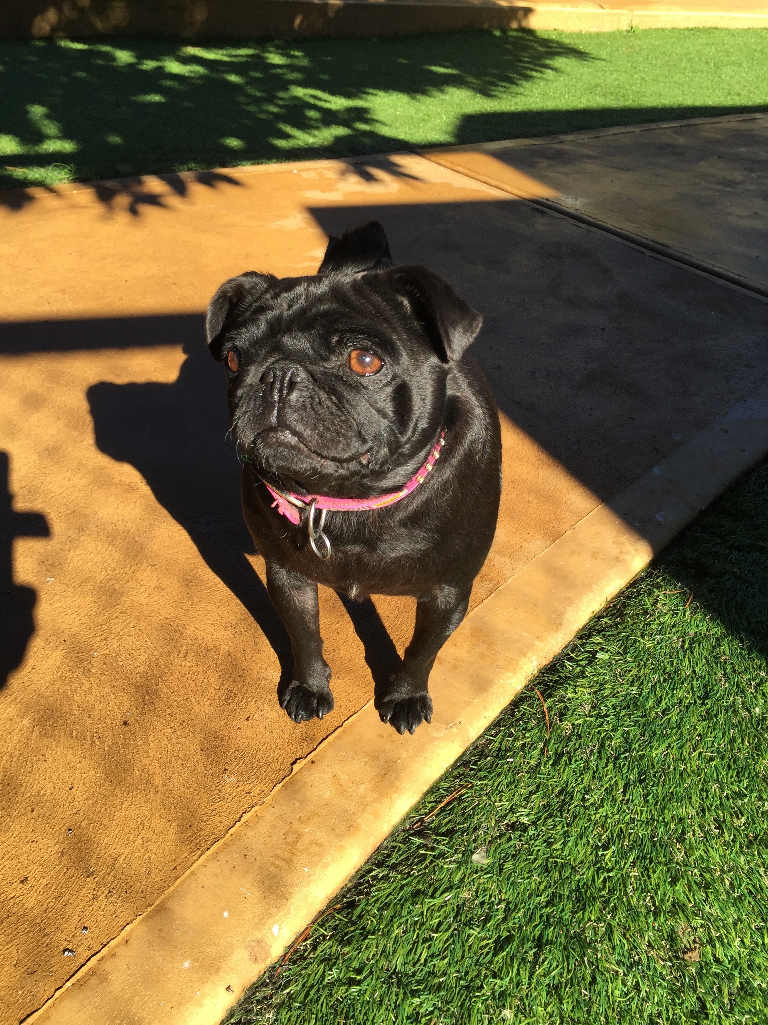 Yoda is a fun loving very active black pug that needs to go with another desexed dog that is of similar nature. She adores humans and needs to go with some one that is home often and can spend time with her.