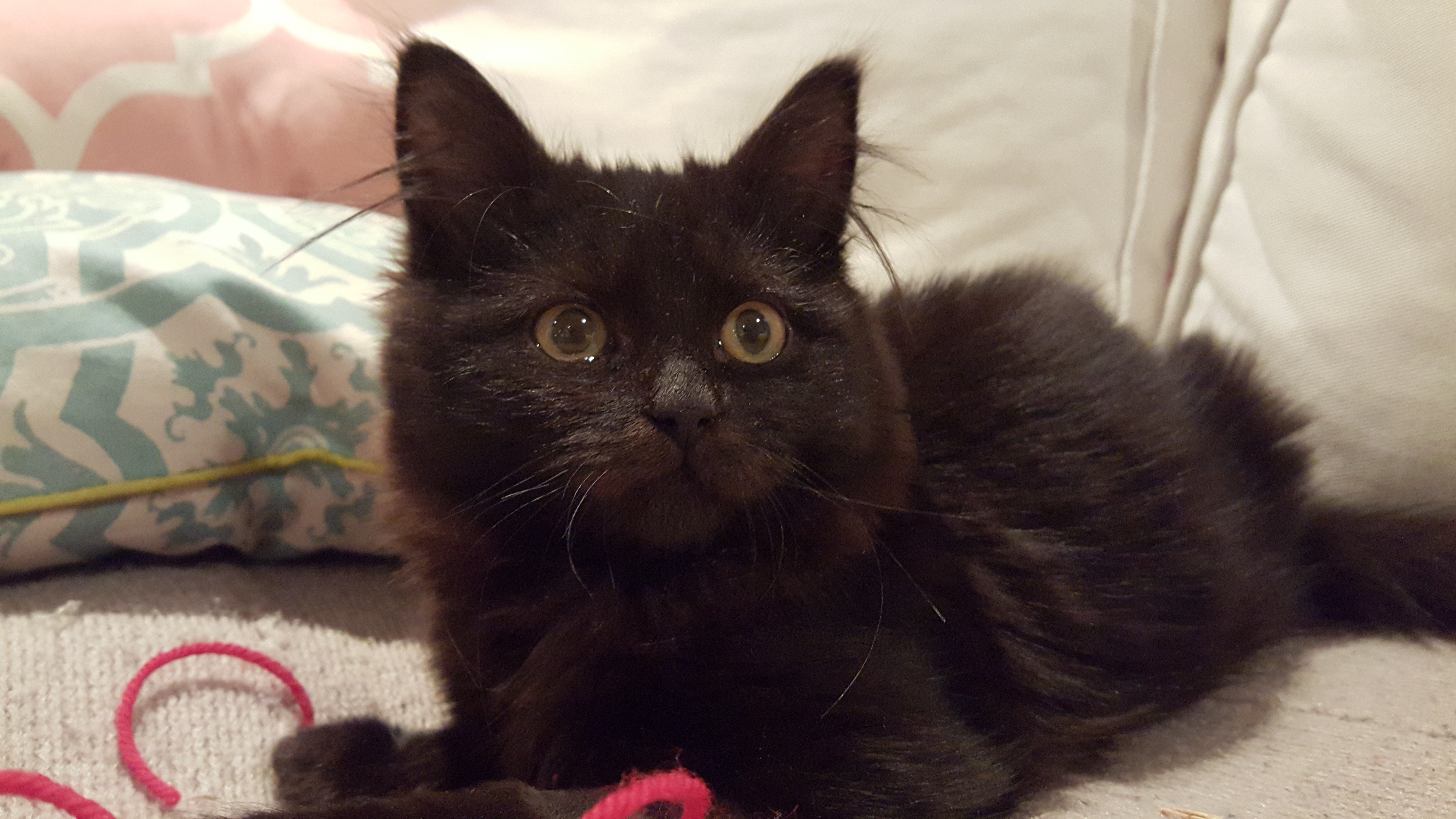Marli has a lovely nature, she has a beautiful soft black medium length coat, she is friendly and enjoys playing with other kittens. She would be well suited to any household.