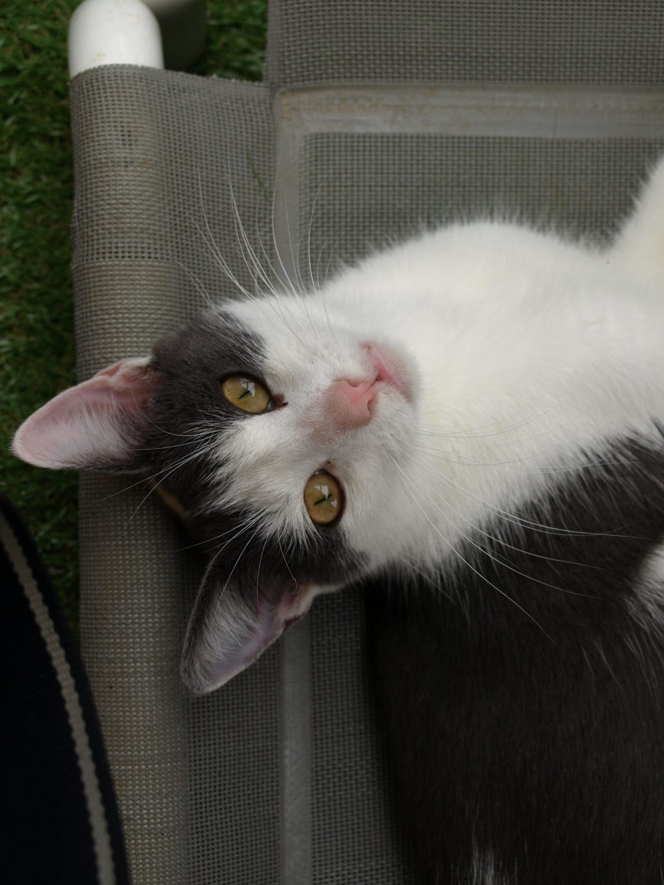 Mrs Brady has some outside time in a safe enclosed patio and on a cat harness.