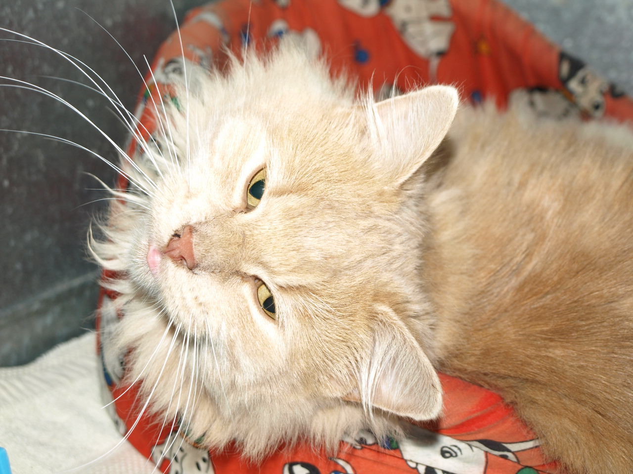 Haddy is a charming chap., with a gentle nature, not much worries him. Haddy has a passion for beds and which is the most comfy, even if he doesn't quite fit in he will squish himself in a laze away for hours. Love a pat and a smooch. Haddy loves his food and the ones with gravy are the best, as you can see in his photos he likes them so much he has gravy on his nose. Haddy is in care with other cats and gets along with them, he likes to play chasy with one of his foster mates. He has some contact with dogs and does not seem to be worried about them. He is Litter trained. One beautiful boy
