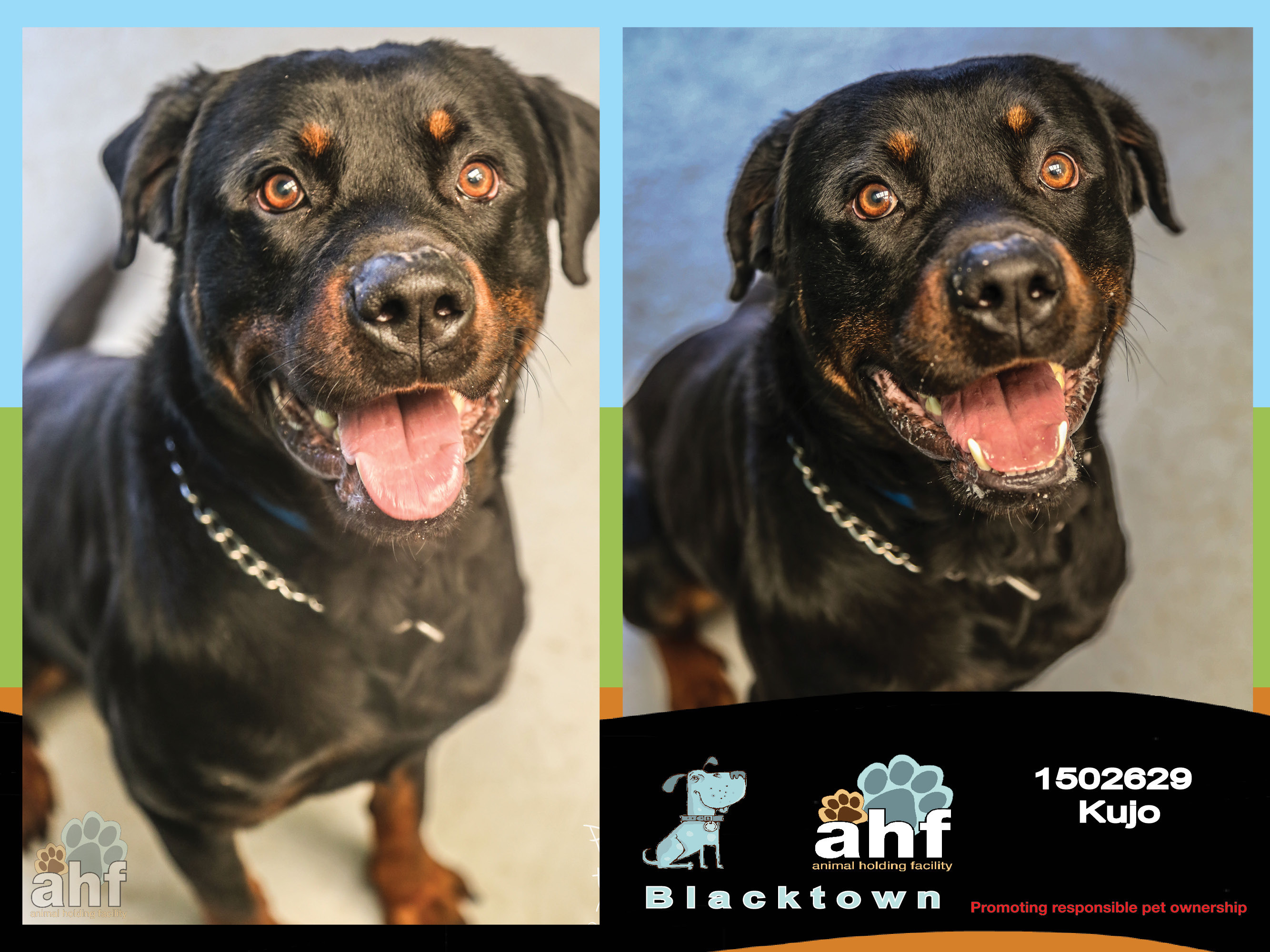 If you already have a dog and wish to adopt Kujo we urge you to visit the facility with your dog for a 'Meet and Greet' to ensure that they are compatible.