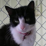 Mary, with her beautiful mask, is a lovely girl who would like nothing more than a home of her own. She's quiet and affectionate. Mary's has obviously been owned as she is wearing a collar, but as she isn't microchipped we cannot find her owner. Mary would make a wonderful companion for a single person and would be find as an indoors/outdoors cat. Pound no. 250 listed 13th october 2008