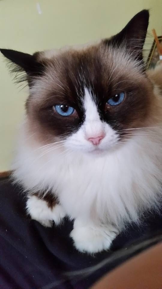 Captivating cleo is a stunning blue eyed beauty with a soft, luxuriously long fluffy coat. Once she gets to know you, she loves nothing more than to sit with you and be adored.