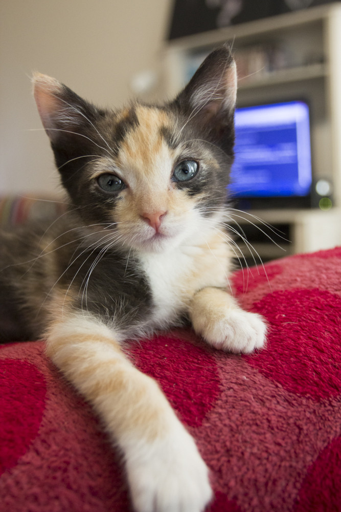 Tawny is an adorable tortie kitten rescued from a local pound and hand raised from 2 weeks of age