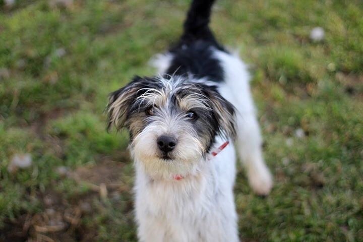 Such a cute little scruffer, Frankie is social with other dogs and is learning to leave the cat alone. He hasn't had much training though, so we recommend that his adopter takes him to puppy school.