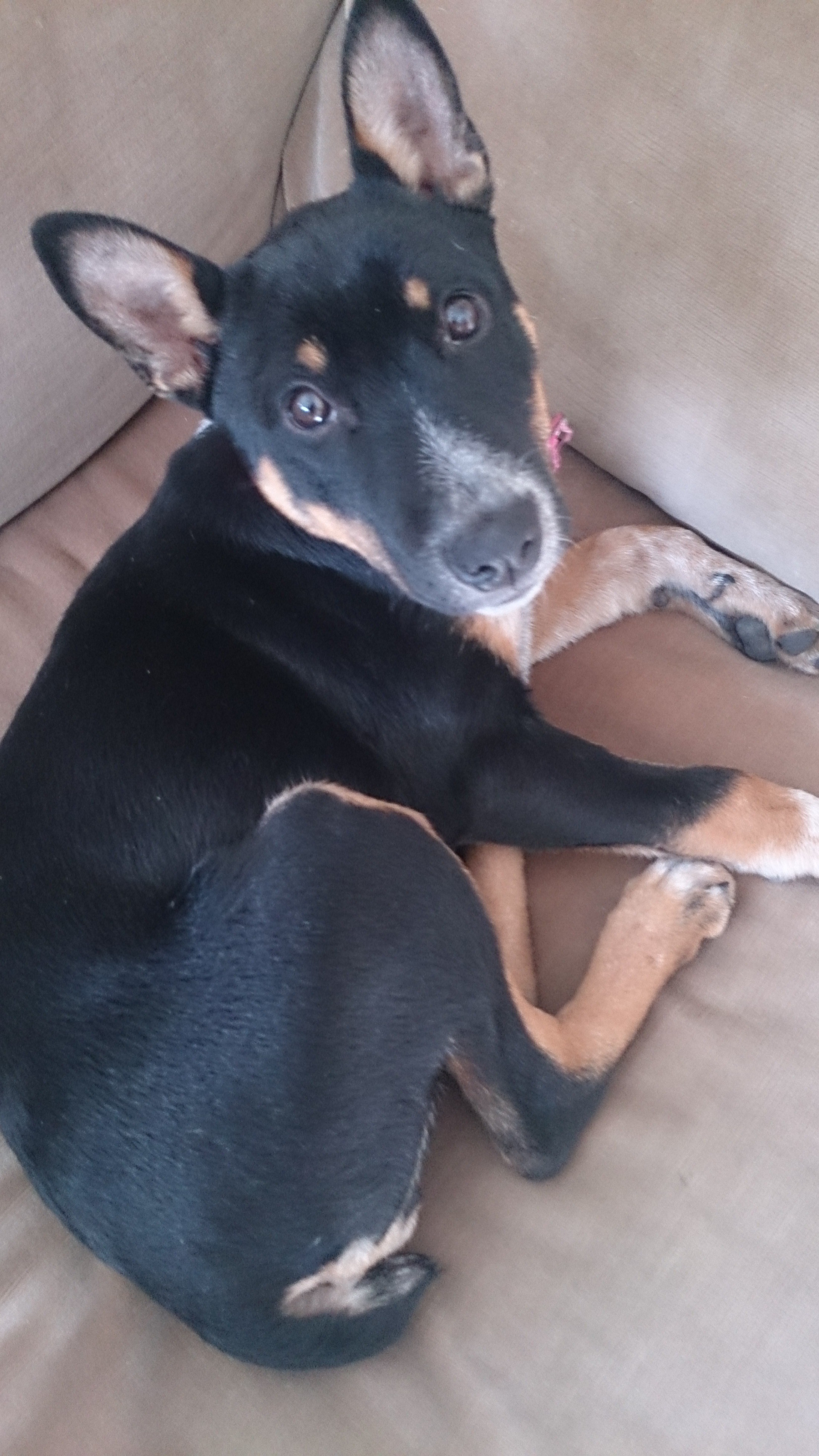 We have no idea who her parents are and make a guess that she is kelpie cross foxie but have no idea. She even has the little stumpy that wags when she is happy.