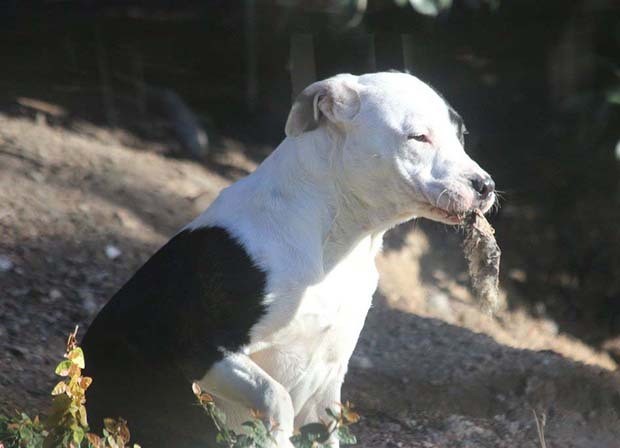 The only thing I have noticed is that if you raise your voice or pick up a broom she will put tail between the legs and go to the furthest corner but once you call her and let her know its ok she is fine.