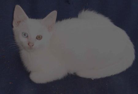 This little boy is simply adorable, he has very distinctive odd eyes,one bright blue and one green,very friendly happy babies, as he is pure white (he is not deaf) he needs to an indoor cat and will make a lovely companion