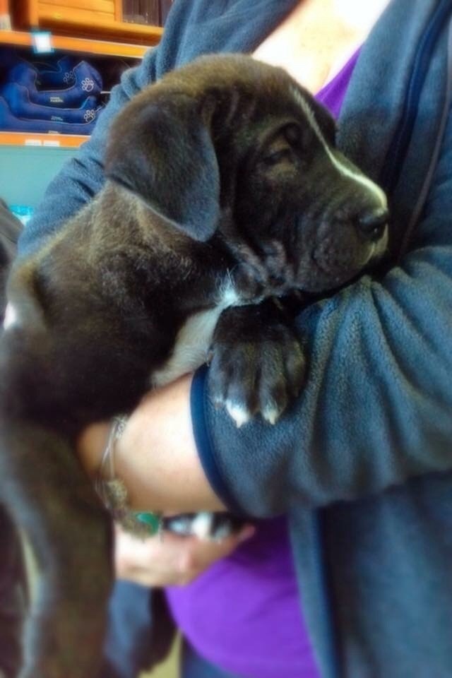 Bear is a solid little tank of a puppy who is going to be a big dog when he grows up. We were told that he is half bullmastiff/Neapolitan mastiff and half Staffy from next door :-)