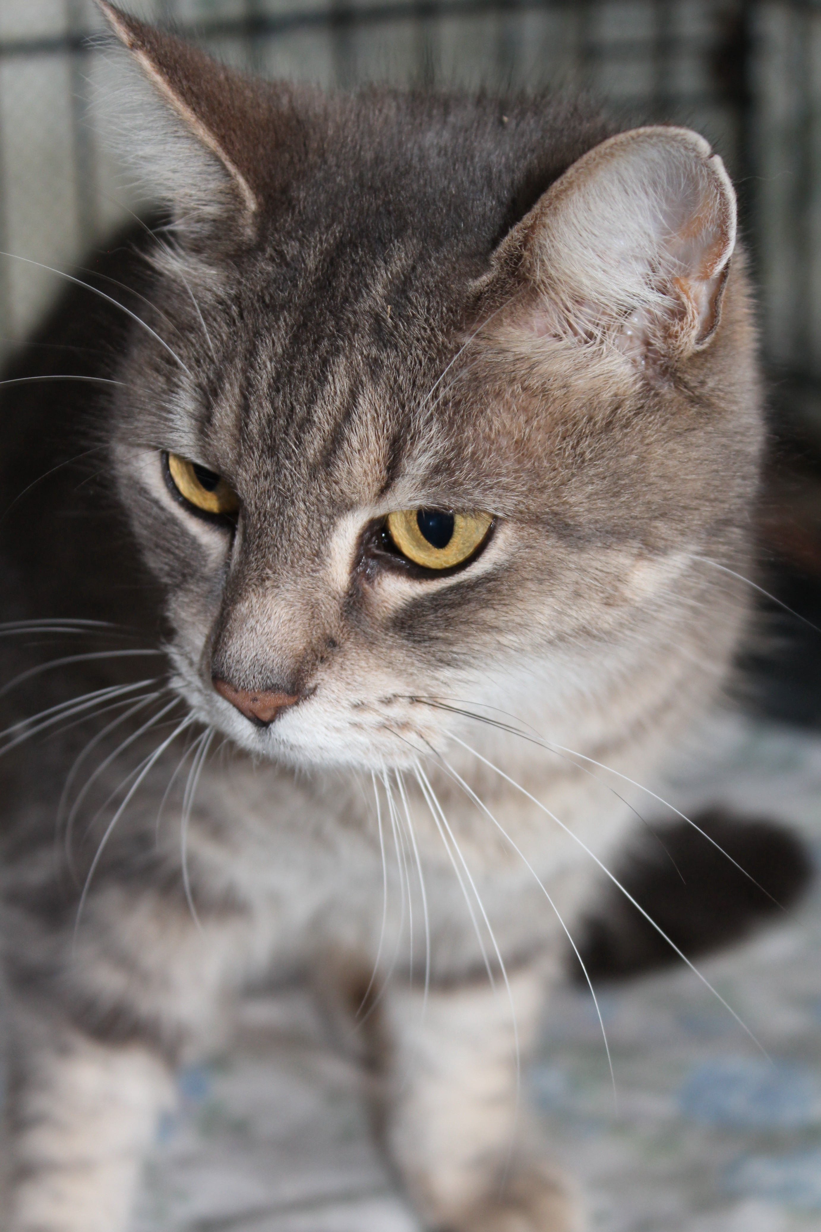 Beautiful silver tabby short hair cat, female, approximately 12 months old.