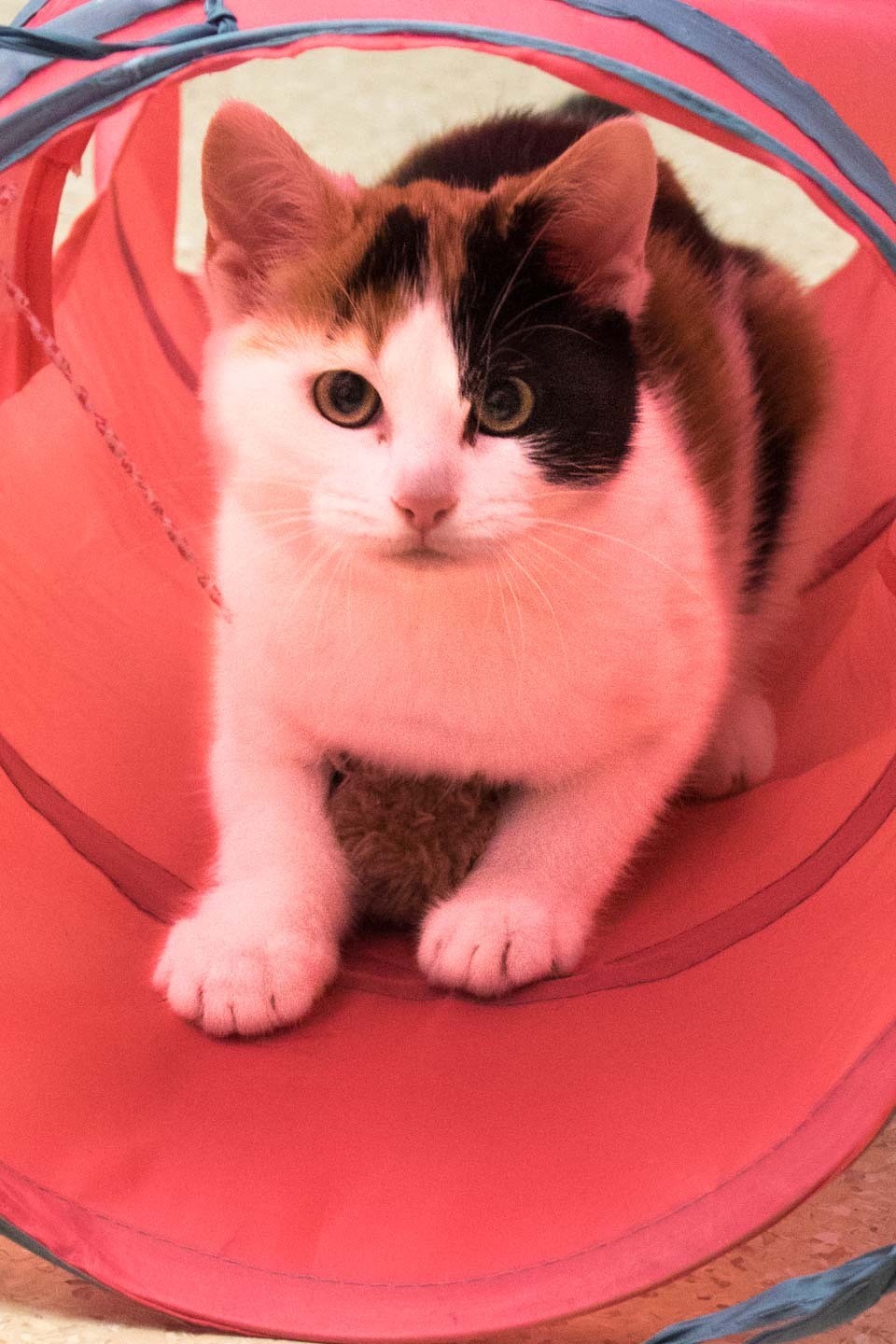 I am loving affectionate and fairly calm for my age. Like all kittens I enjoy to play I will play with almost anything from scrunched up newspaper to ping pong balls. I am social with other cats however it is important to remember I am only small please introduce me slowly to any existing pets to make sure they like me. I have a pink nose so will need to be kept inside at all times to keep me from getting sunburnt. A scratching post litter tray and a windowsill will keep me a happy and I will never miss the 'wild' outdoors. *INDOORS ONLY