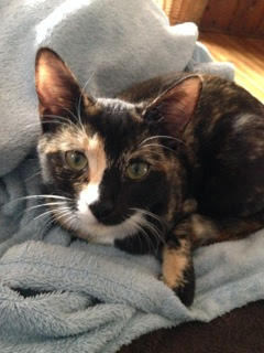 Indra, is a very unusual looking tortoiseshell with a stunning multicolored face. Indra was bottle-fed from five days of age and as a result she loves a cuddle (if you sit down Indra will appear). She often sits in her foster mum's lap staring up at her as if to say where is my bottle?