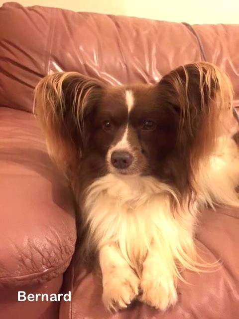Bernard is quite large for a Papillon, he's closer in size to a cavalier spaniel. He is social with people and other dogs, and is housetrained.