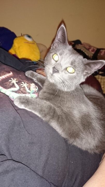 Hunter is a 6 month old Russian Blue type kitten. He is cat and small dog friendly. He would be better in a household without children. \ He is very shy, but once he is comfortable with you he will show you what a very active, athletic and curious little man he is. He likes to pretend he is strong and independent, but he loves nothing more than coming to you for some loving in the evenings, and sleeping on your bed at night. He has the most wonderful purr.