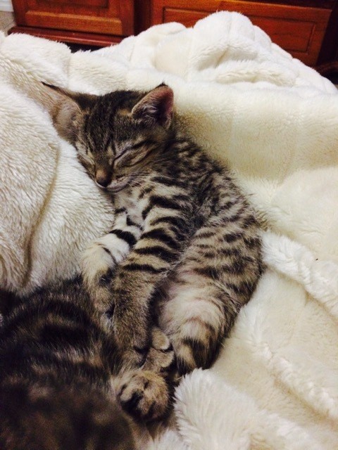 George is adventurous and brave and will run, play, chase your toes, sit on your shoulder (or head) and will give you little kitty-kisses. \ He might also lick your nose, just to “help” you wake up – he is a very effective alarm clock really!
