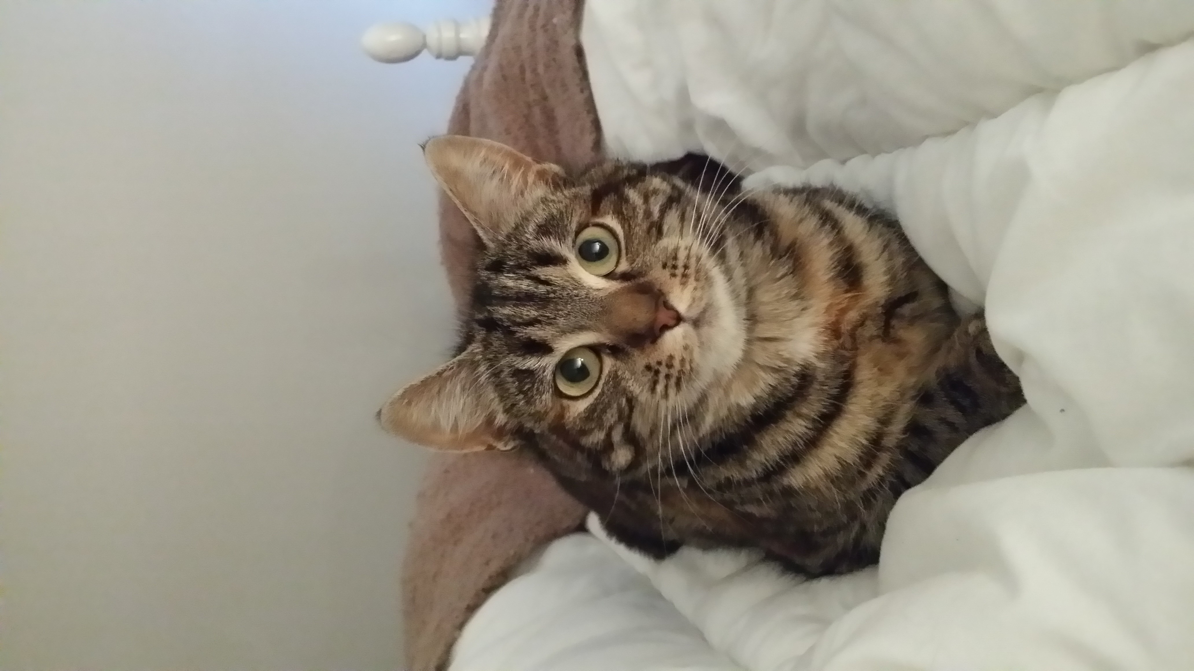 Due to Penny being rescued from living life outside, and not having much handling as a kitten, she does not like being picked up and gets quiet scared. But with a patient and understanding owner who is willing to work on this, Penny could learn that being picked up is ok.