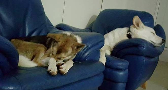 Being in and out of homes all of her short life she has picked up some bad habits. She loves the taste of shoes, removing stuffing from soft toys and has been known to nibble on furniture. Due to her timid nature any discipline will have to be gentle and more reared towards positive reinforcement. Rosie is also a renowned escape artist, so 6ft solid fencing that cannot be dug under will be required to keep her in. We currently have not seen this escape behaviour as she is happy staying with Ruddy, but past owners have had much difficulty with this. On the plus side, she does not bark, so is a nice quiet dog to have around.