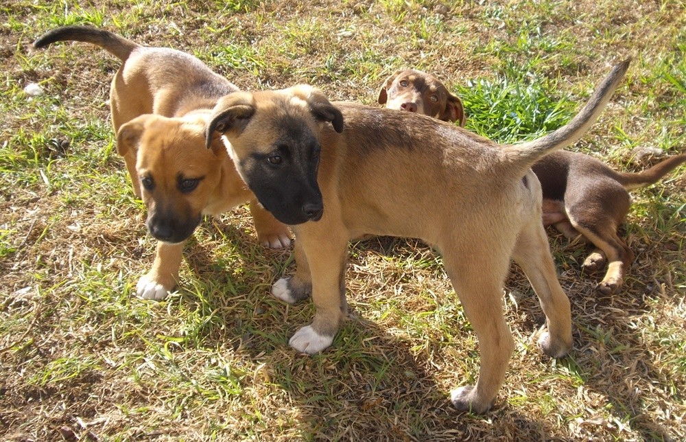 Lotus is one of two girls in a large litter of boys. She is quiet and cuddly and likes to sleep under the chair in the sun. She wrestles with her brothers and loves to play and chew on sticks and grass. She came to us as a Labrador cross but seems to have maybe some mastiff in the mix. She is bright and happy and would make a wonderful family dog.