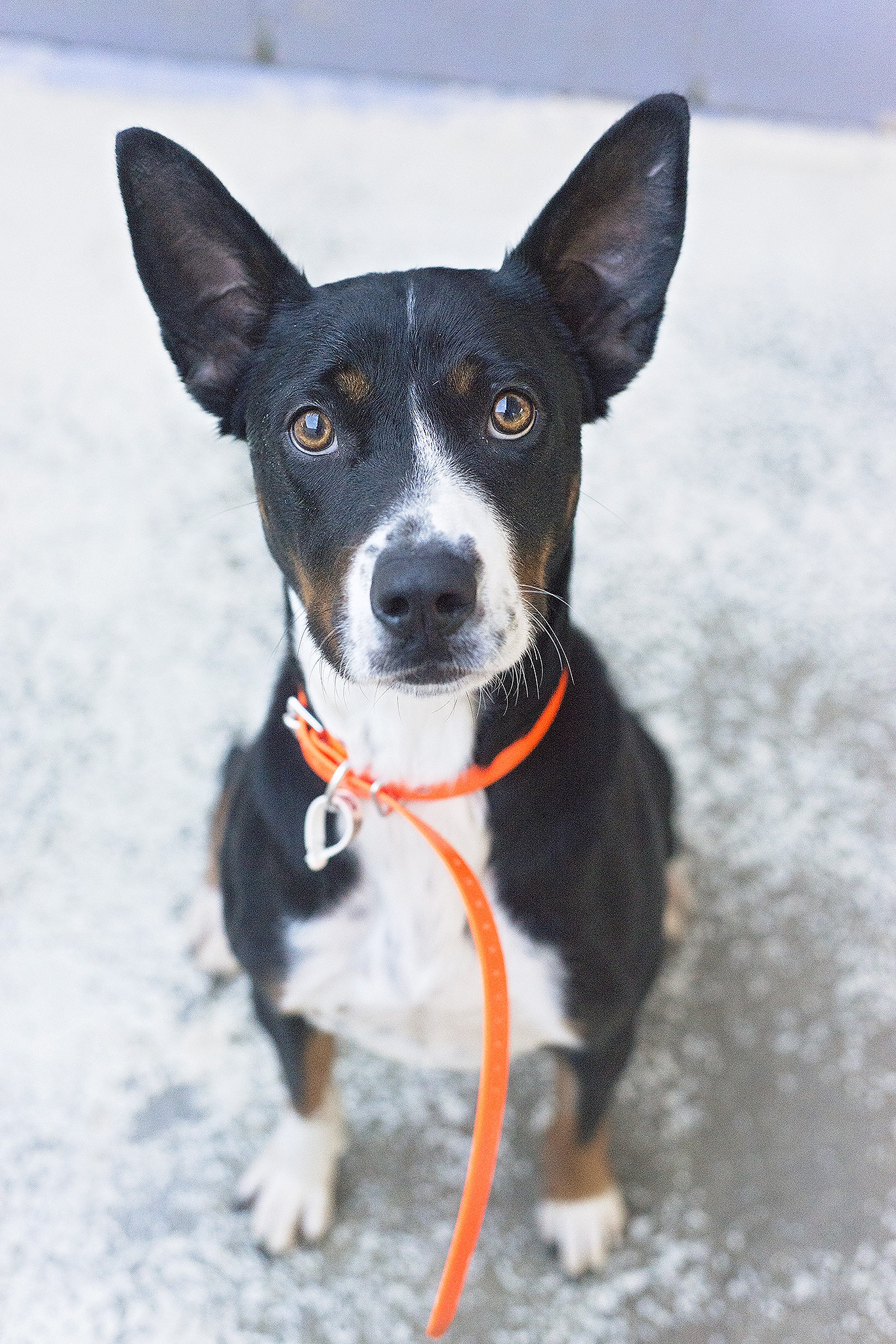 Medium Female Basenji x American Staffy Mix Dog