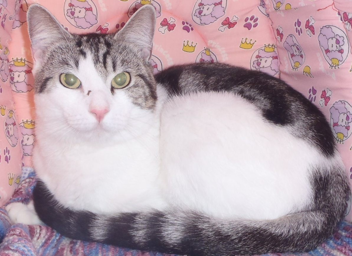 Ninja is a quiet, shy retiring boy. He was surrendered to the pound after having been an indoor cat for all his life. He likes nothing better than to curl up and observe. Very affectionate when he gets to know you.