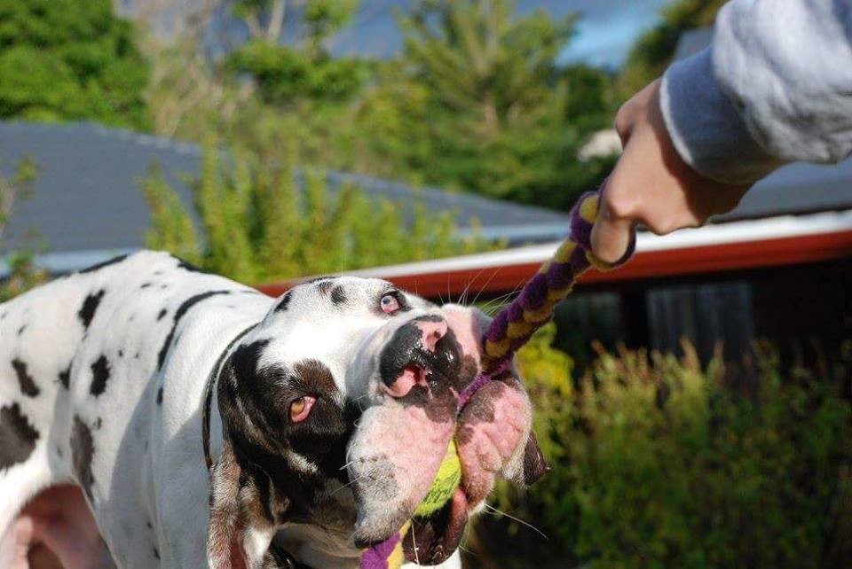Vinnie is a 2-year-old, 58kg harlequin Great Dane who loves affection and being around you. Despite his size, he is still a puppy in nature and will be your friend for life if you give him his belly rub. He is well mannered and calm around people, including children. Vinnie is low maintenance as he will lounge for the rest of the day once he’s had his walk and breakfast. He has good dinner manners, knows he can’t sit on the couch or be in the bedrooms with his foster family but sometimes sneaks in to give you a morning wake-up kiss if you are late getting up. He is not destructive, barks infrequently and walks nicely on a lead beside you. Since arriving, he has learnt to be less anxious when you leave the house for long periods, and you will need to continue to extend this, if necessary. It seemed that Vinnie had little socialising with other dogs upon arriving, but has learned to meet other dogs. Your only other task with this rescue dog is to continue to properly introduce him to well mannered dogs so that he knows other dogs are fun to be with.