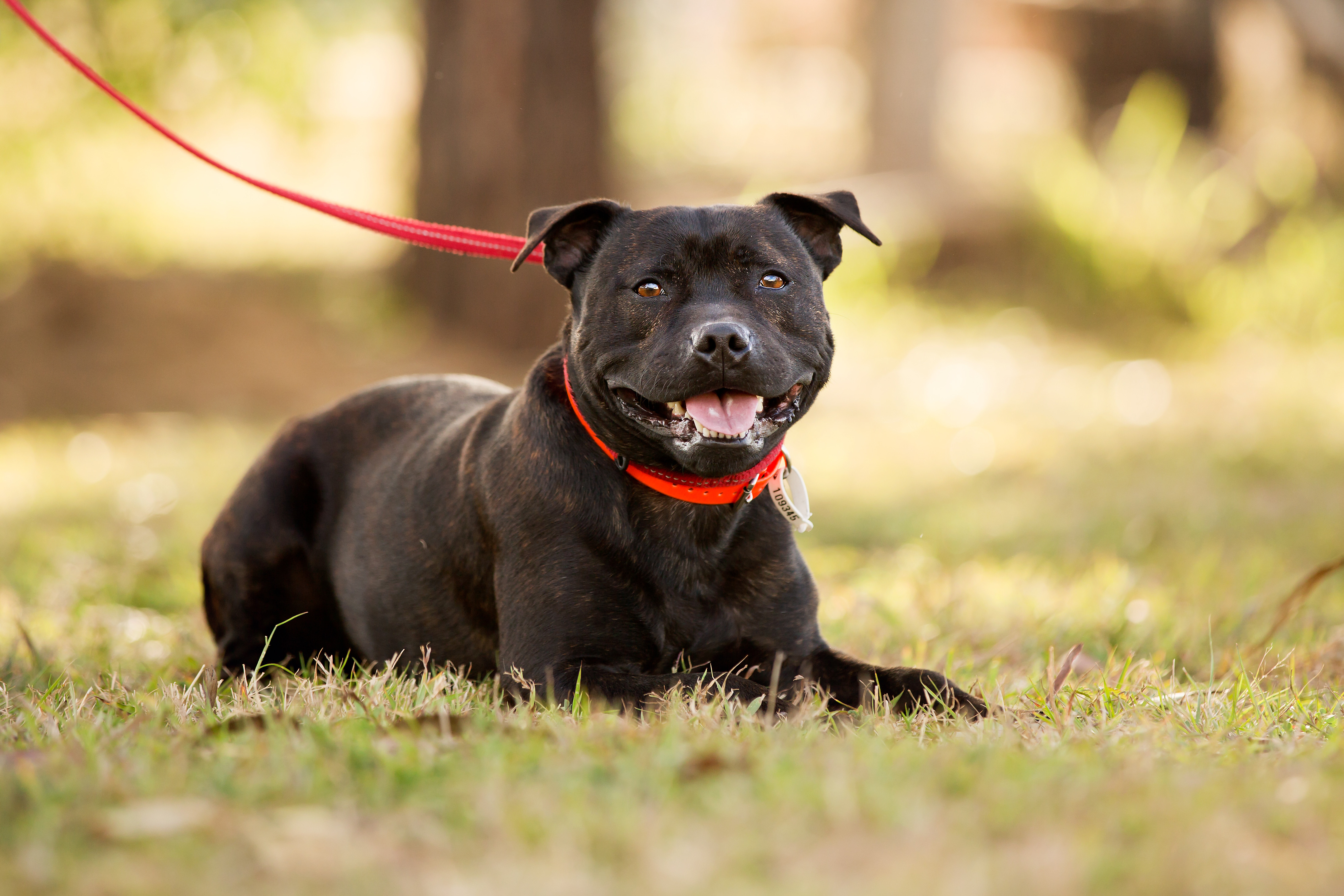 Badger is the sweetest little Staffy who just loves to cuddle and smooch up to his humans. He is a very friendly happy-go-lucky boy who enjoys the company of other dogs and loves to have a run around the yard. Badger is very eager to please and would love to learn some new tricks with his humans. He enjoys going for walks and getting out and about. He will make the very best companion for the person lucky enough to adopt this handsome boy. Come down and meet him today!