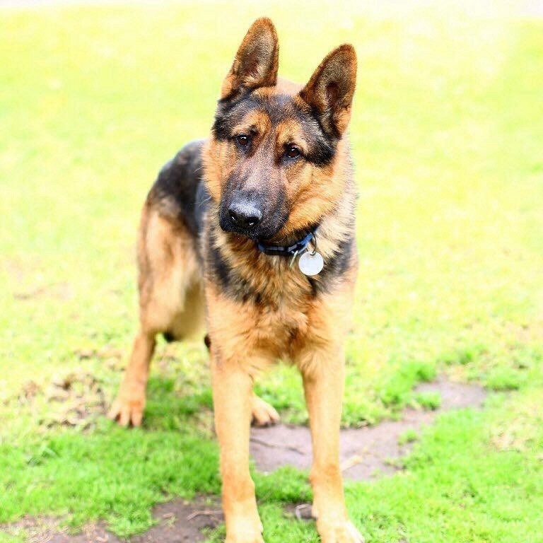 Mac has come to us from a local shelter so his full background history is unknown, what we do know about him is he loves people and due to his age he would be best suited to a family with older children. He is untested with cats and is curious about other dogs so maybe suitable for a female companion. He is strong on the lead but controllable and he would benefit from extra training. He is a little underweight at the moment, but with a proper nutrional diet this will stabilise. If you feel you can offer Mac a loving home then please go to our website www.gsrv.com.au and fill out an application form with as much information as possible.