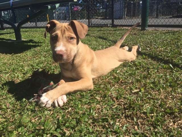 Hello, my name is Sebastian. I am a 3 month old Mastiff mix and am a big sweet heart! I am only a baby and have lots of growing to do. I will need a good quality puppy diet and regular light exercise to support my growing bones. I will be a large sized dog when I'm all grown up. While I have been here, I have learnt how to walk beautifully on a lead and I can sit and am learning how to lie down on command. I am looking for a family who will make me feel loved and included and will continue on with the training that I have begun. I am ready to go to my new home now, so please come and meet me today.