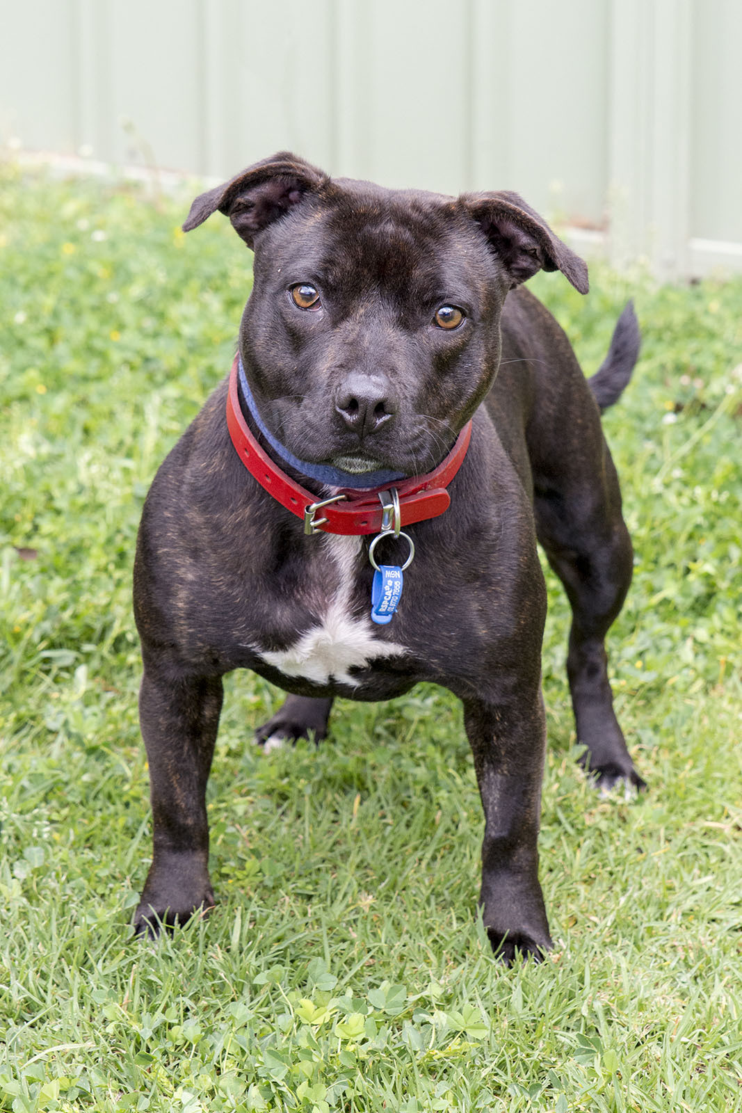 Hello my name is Sophie and I'm the cutest little girl!I'm a very loving and affectionate girl who would love to come home with you. I absolutely love being around people I would love nothing more then to cuddle up with you on the couch at night. I am a very social girl but I can be a little shy at first so it is important that I meet all the members of my new family to ensure that we are all comfortable with each other. Being a Staffy I have a lots and lots of energy to burn. I would love my new owners to exercise me daily this can include walks playtime and trips to the local dog park. I would also really enjoy being included in the family activities as well. As you already know I adore my human companions so much that I can get a little stressed when I am left alone. It is important that when I am left alone that I am left with items to keep me occupied. I love my food so things like kongs bones raw hides and long lasting treats are great things to leave me with. This will help reduce my stress when left alone. I'm a very smart girl did you know that I can already sit? Being so food motivated makes me quite trainable and I would love my new owners to continue my obedience training with me. Being so sweet I also enjoy playing with other doggy friends. If you have another dog at home please bring them in to ensure that we get along! If you think that I would be the perfect addition to the family please enquire about me at the front counter. I can't wait to meet you! LEVEL 2 ADOPTION SEP HANDOUT MUST MEET ALL FAMILY