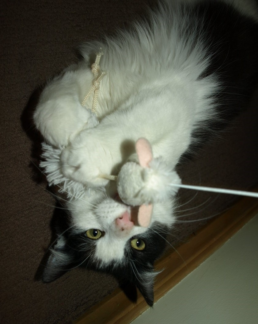 Effie just loves cat toys of any kind, and loves the cat tunnel, the faster she runs through it the more noise it makes.