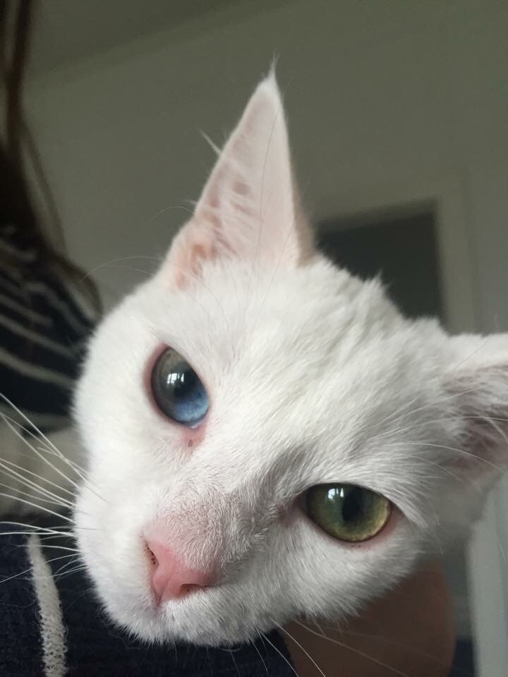 I am white as snow with one green and one blue/green eye. I never stop purring! And I mean never! You can even ask my foster mum. She thinks I am the sweetest lap cat she has ever met. At first I can be timid around humans I don't know very well, but all it takes is one good head rub session and I will love you unconditionally. I know there is the perfect furever home out there for me and I would really love to find it soon! I can't wait to meet you!