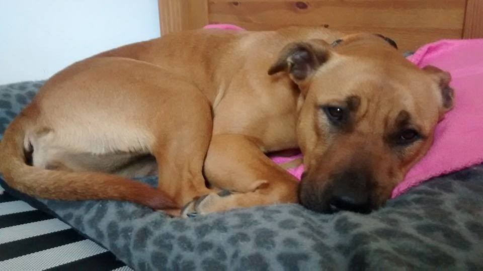 She is a staffy X and absolutely gorgeous and full of affection, has had a lot of training and just loves people!