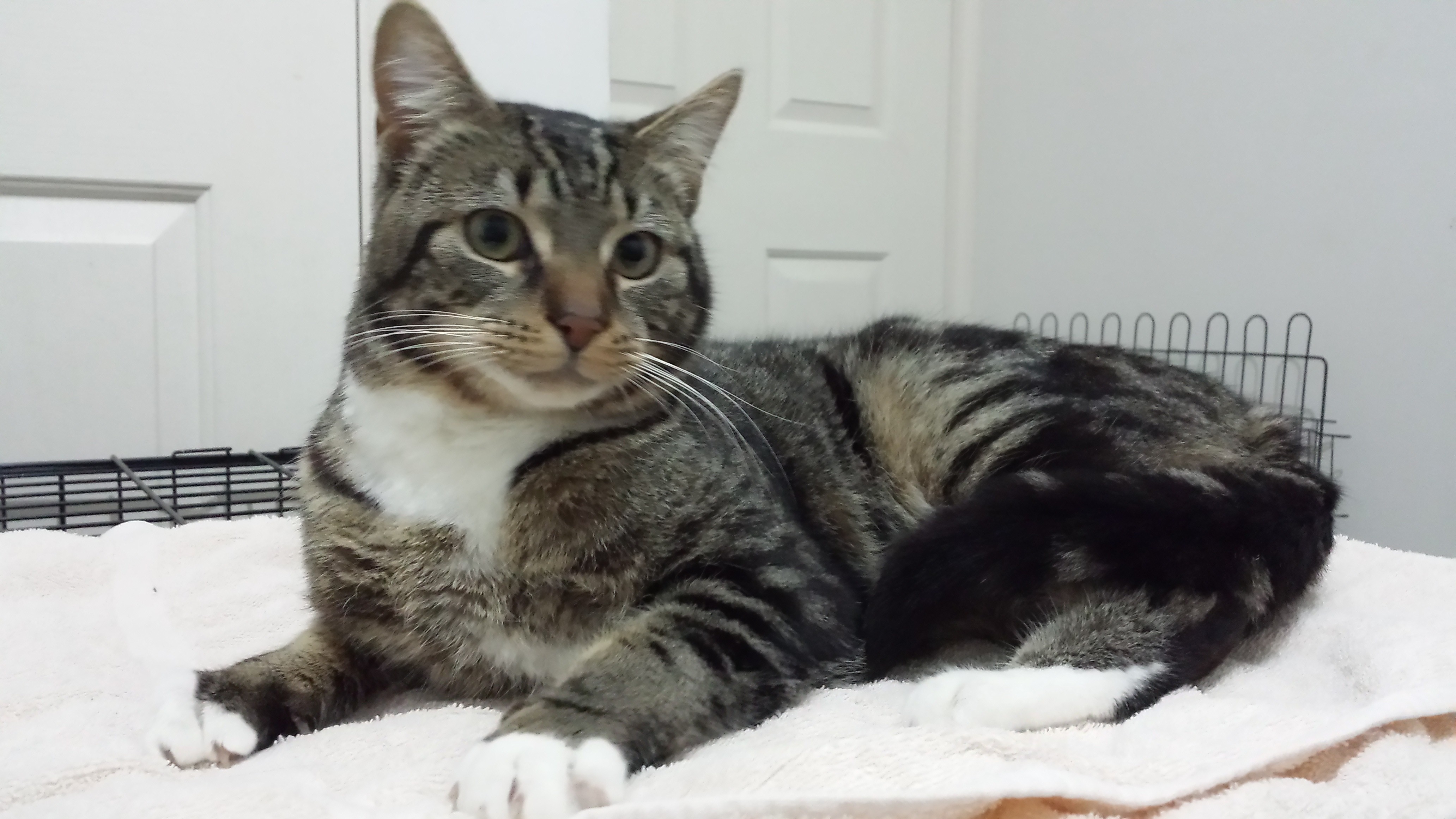 He loves other cats and loves to play with all kind of toys. He has such a gentle nature and is going to be such a lap cat in his new home.