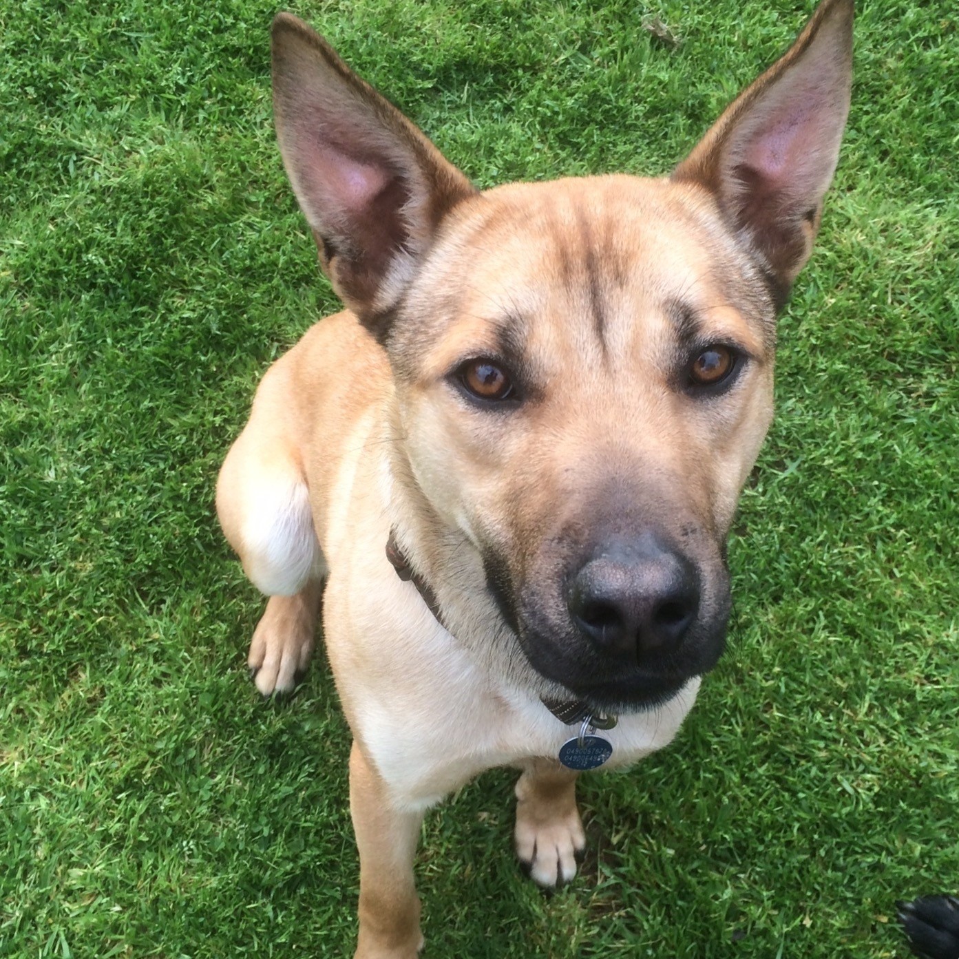 Dusty is a charming young dog who is slightly taller than a kelpie. He is eager to please, fully housetrained, and sits when asked.