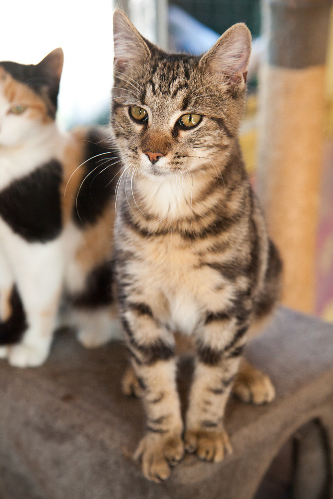 Gizmo, Cuddles4, Yoda2 and Tiger2 were found at Westlawn at approximately 2 weeks old, their eyes were just open. The person who found them could not keep them and did not know how to look after such little kittens. Jo, one of our foster carers, agreed to look after them until they were old enough to come here. The first few weeks was very tough going for Jo as they had to be fed every 2-3 hours and it was very touch and go. Once they started to lap it became easier but due to their poor start they developed slowly. Tiger has grown to be the biggest, Yoda is nearly as big, the girls are very petite even now and look a lot younger. They are all well and healthy now and have wonderful loving natures, in fact at times demanding of cuddles. They all have been regularly wormed, de-flead, micro-chipped, de-sexed and immunised. Gizmo has already found a home, lets hope the others find one too, very soon.