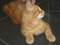 Borange is a friendly, confident, outgoing little boy. He's great with all people and other cats and shows no fear of dogs. Borange is a little purr machine who will make a great addition to any household