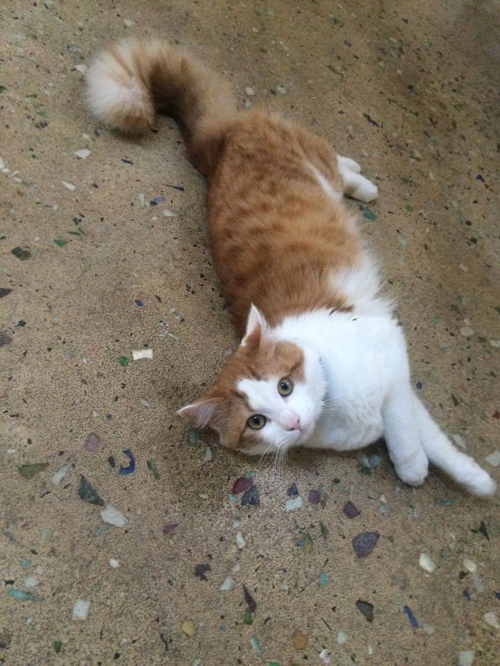 Friendly boy with a big fluffy tail. He took a couple of weeks to settle in to his new surroundings but now he's a happy and confident boy :) He is untested with other cats and dogs but seems pretty laid back.