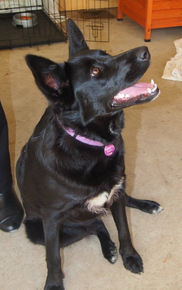 Polly is a well mannered, active girl. Currently in foster care with a female border collie and they get on really well. Does not appear to be keen on little yappy dogs though. Not sure about cats, chickens or pocket pets.