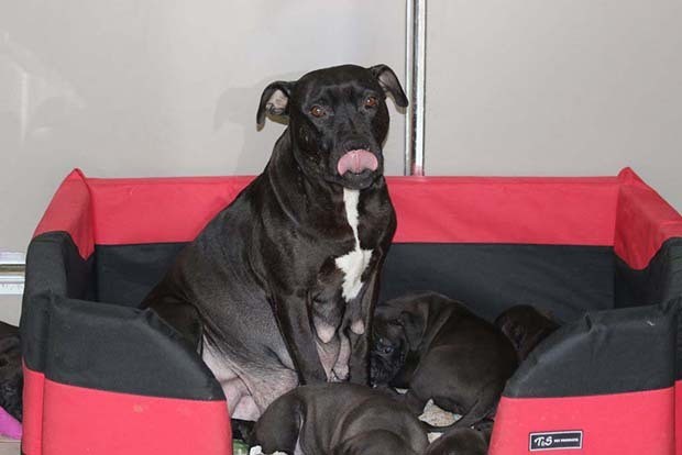 This poor dog came into the pound and we were totally unaware that she was pregnant until her time was just about up and she blew up like a balloon.