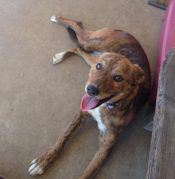 She has beautiful markings. She is a kelpie shape with tiger stripes and white paws. She is a petite girl at 12kg and unlikely to grow much bigger.
