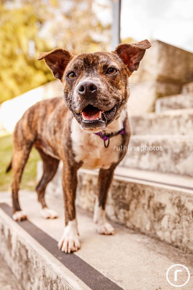 She is only petite, a little Staffy mix around 9 months old. Easy to handle, bath and groom, Maggie loves her car rides, and is house trained. She’s not too bad walking on leash but needs more training.