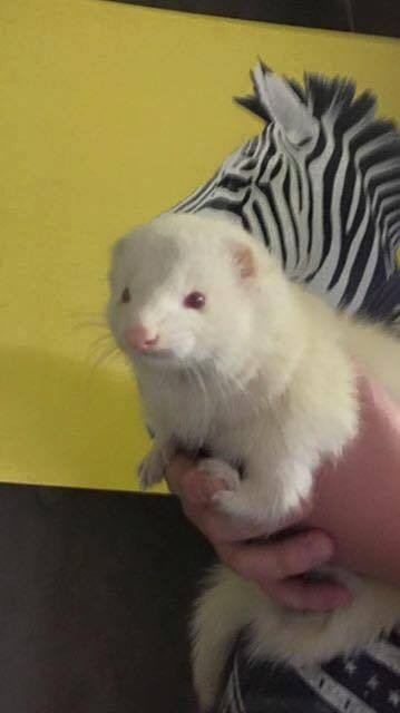 He is a super social ferret and gets along with both male and female ferrets without an issue.