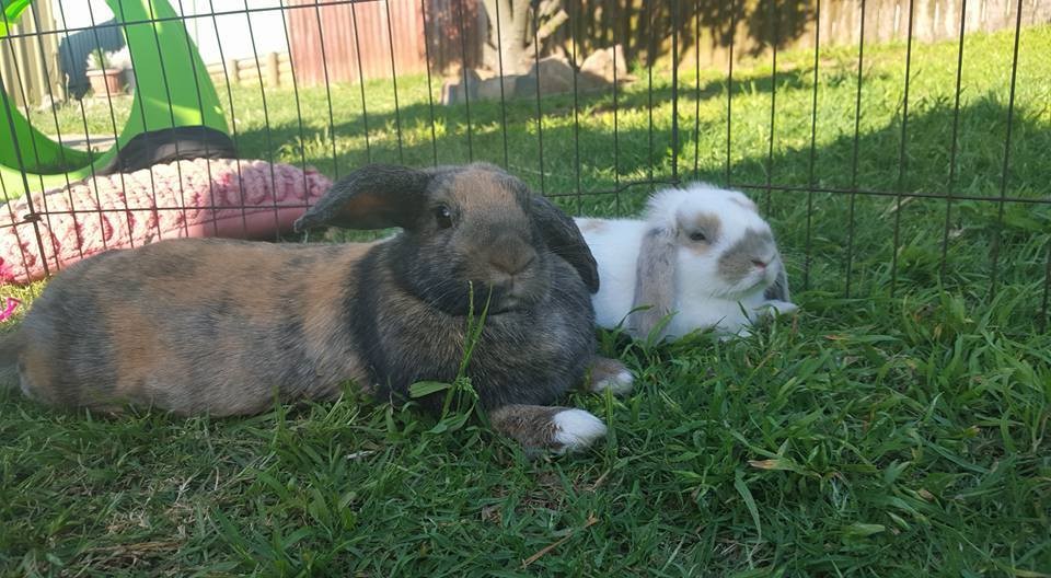 Beautiful placid bunnies. Great with kids and dogs. Love to be out on the grass. Very sweet pair. Favourite foods are strawberries and kale. Hersheys will need a couple days to come out of her shell but kisses is so friendly!